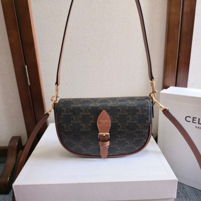 Celine Folco Shoulder Bag In Triomphe Canvas And Calfskin